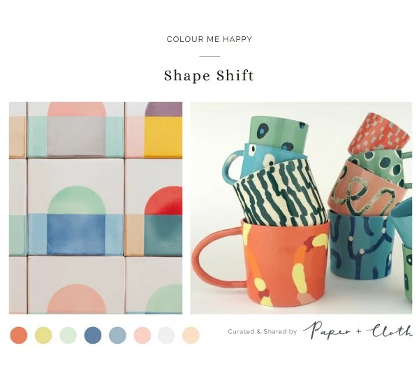 Today we're sharing this gorgeous 'Shape Shift' colour palette. Inspired by colourful Portuguese tiles and painterly glazed ceramics, we love the contrasts between earthy reds, azure blues and clean pastels.